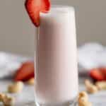 Keywords: cashew milk, strawberry milk, homemade nut milk, kid friendly drink, plant based milk, dairy free milk, healthy beverage, vegan milk