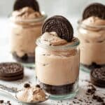 - Garnish and Serve: Just before serving, top each mousse glass with a whole Oreo cookie for decoration. Serve chilled and enjoy!