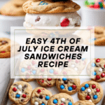 Keywords: 4th of July, ice cream sandwiches, chocolate chip cookies, patriotic dessert, summer treat, homemade ice cream sandwiches