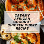 African coconut chicken curry, also known as Kuku Paka, is a flavorful and aromatic dish featuring tender chicken simmered in a rich sauce made with coconut milk, tomatoes, and warming spices like turmeric, cumin, and coriander. This dish offers a perfect balance of creamy, spicy, and citrusy notes, traditionally served with basmati rice for a satisfying and comforting meal.