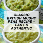 This Authentic British Mushy Peas recipe is a classic side dish perfect for pairing with traditional British fare like fish and chips. Made from soaked marrowfat peas and gently simmered to a thick, creamy consistency, these mushy peas boast a subtly sweet and earthy flavor with a hint of salt, embodying a nostalgic comfort food that’s beloved across the UK.