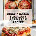 This Baked Eggplant Parmesan is a delicious and healthier twist on the classic Italian favorite. Featuring layers of crispy roasted eggplant slices coated in flavorful panko and Italian breadcrumbs, smothered in marinara sauce, fresh mozzarella, parmesan, and fragrant basil, this dish is baked to bubbly, golden perfection. A perfect vegetarian main course that’s hearty and comforting without the need for frying.