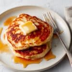 - Step 4: Serve the pancakes warm topped with butter and maple syrup, if desired.