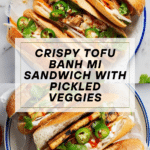 This vibrant Banh Mi Sandwich recipe features crispy marinated tofu, tangy pickled vegetables, and fresh herbs all layered on a crusty baguette. A perfect plant-based twist on the classic Vietnamese sandwich, it balances savory, spicy, and tangy flavors with a satisfying crunch and creamy spicy mayo.