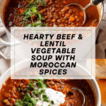 Keywords: Beef soup, lentil soup, Moroccan spices, ground beef recipes, healthy soup, vegetable soup