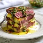 These Beef Tenderloin Chimichurri Stacks are a flavorful and impressive dish featuring tender seared beef tenderloin layered with crispy smashed gold potatoes and a vibrant homemade chimichurri sauce. Perfect for a special occasion or a delicious gourmet meal, this recipe balances juicy meat with fresh herbs and tangy flavors.