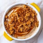 - Drizzle and crumble: Warm another 1-2 teaspoons of Biscoff spread in the microwave for 15-25 seconds until melty. Drizzle this melted spread over the baked oatmeal in each ramekin. Then crumble one Biscoff cookie on top of each serving for added texture and flavor.