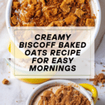 Keywords: Biscoff baked oats, baked oatmeal, breakfast oats, easy breakfast, healthy breakfast, protein oats, Biscoff spread recipe
