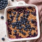 Keywords: blueberry baked oatmeal, healthy oatmeal bake, vegan breakfast, gluten free oatmeal, baked oats recipe