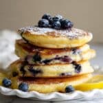 These blueberry lemon ricotta pancakes are fluffy, tangy, and bursting with fresh blueberries and a hint of lemon zest. The ricotta cheese adds a creamy texture, making these pancakes delightfully light yet rich. Perfect for a weekend breakfast or brunch treat, served with maple syrup and powdered sugar.