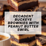 Buckeye Brownies combine a rich, fudgy chocolate brownie base with a creamy peanut butter layer and a glossy chocolate topping, inspired by the classic buckeye candy. This decadent dessert features a crackly top, a smooth peanut butter filling, and a shiny chocolate ganache finish, creating an irresistible treat perfect for peanut butter and chocolate lovers.