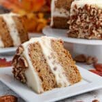 - Frost Cake and Garnish: Once the cake is completely cooled, frost it evenly with the cream cheese frosting. Optionally, garnish the edges with chopped pecans for added texture and presentation.