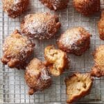 - Drain and serve: Remove the cooked calas from the oil and transfer them to the prepared paper towel-lined sheet pan to drain any excess oil. Once drained, dust the warm fritters generously with powdered sugar. Serve immediately to enjoy their crispy exterior and soft, sweet interior.