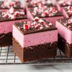 Delight in these festive Candy Cane Brownies featuring a rich, fudgy chocolate base topped with a creamy peppermint filling and a glossy chocolate ganache sprinkled with crushed candy canes, perfect for holiday celebrations.