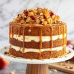 Keywords: Caramel Apple Cake, Pecan Layer Cake, Autumn Dessert, Cinnamon Apple Cake, Caramel Frosting, Holiday Cake