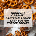 Delicious homemade caramel pretzels coated in rich butter toffee, providing a perfect sweet and salty snack that combines crunchy pretzels with a smooth caramel coating. These buttery toffee pretzels are baked in the oven to achieve a non-sticky, crispy finish and make a great treat for any occasion.