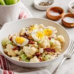This refreshing Cauliflower Salad features tender roasted or steamed cauliflower combined with crisp celery, green onions, dill pickles, and hard boiled eggs, all bound together in a creamy Dijon mustard mayonnaise dressing. Perfect as a light lunch or a side dish, this versatile salad is easy to prepare and packed with vibrant flavors and textures.