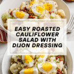 Keywords: cauliflower salad, roasted cauliflower, healthy salad, creamy salad, low fat salad, easy lunch, vegetable salad, Dijon mustard salad