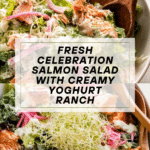 This Celebration Salmon Salad with Yoghurt Ranch Dressing is a vibrant and refreshing dish perfect for any special occasion or casual gathering. With tender smoked salmon, tangy pickled onions, fresh fruit, and a creamy herb dressing, it combines bright flavors and textures for a truly satisfying salad experience.
