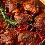 Keywords: Chicken Cacciatore, Italian stew, chicken thighs recipe, rustic Italian chicken, one pot chicken dish, tomato chicken sauce, comfort food, red wine chicken