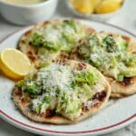 These Chicken Caesar Smash Tacos combine the bold flavors of a classic Caesar dressing with juicy, spiced ground chicken served atop toasted pita bread. The unique preparation involves smashing the chicken with spices and Parmigiano Reggiano, then searing it on a griddle for a beautifully golden crust. Topped with a fresh romaine Caesar salad and shaved Parmesan, these tacos deliver a perfect balance of creamy, tangy, and savory notes in every bite.