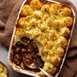 This Chicken Mushroom Pie with Duchess Potato lid is a comforting, hearty dish perfect for cozy dinners. Tender chicken thighs and flavorful mushrooms are simmered in a rich Guinness sauce, then topped with beautifully piped mashed potatoes and baked to golden perfection.