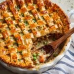 This Chicken Pot Pie Casserole is a comforting and hearty dish that combines tender cooked chicken, fresh vegetables, and a creamy savory sauce baked under a flaky pie crust. Perfect for a cozy family meal, it features a classic lattice pie crust topping or a full crust option, delivering all the richness and flavor of a traditional pot pie in a convenient casserole form.