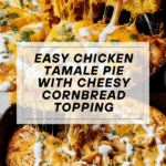 This Chicken Tamale Pie is a comforting and flavorful one-pan meal combining a golden, moist cornbread crust with a spiced shredded chicken filling. Topped with melted cheddar and Monterey jack cheeses, and garnished with fresh cilantro and sour cream, this dish offers a delicious twist on classic tamale flavors, perfect for a satisfying weeknight dinner.