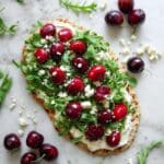 This Chickpea Flour Flatbread with Cherries, Honey Ricotta, Feta, and Arugula is a delightful gluten-free treat that balances savory and sweet flavors. Perfect for a light meal or an elegant appetizer, it combines wholesome ingredients with fresh, vibrant toppings.