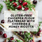 Keywords: chickpea flour flatbread, gluten free flatbread, honey ricotta, cherry flatbread, feta and arugula flatbread, healthy flatbread, savory and sweet flatbread