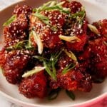 - Garnish and serve: Sprinkle the coated cauliflower with sesame seeds and thinly sliced green onions. Serve immediately for best texture and flavor.