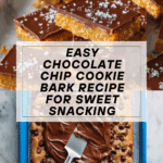 Keywords: Chocolate chip cookie bark, easy cookie bark, baked cookie bark, semisweet chocolate, dessert bark