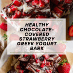 Keywords: Greek yogurt bark, chocolate-covered strawberries, frozen yogurt bark, healthy dessert, Greek yogurt dessert, strawberry chocolate bark