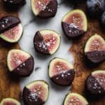 Keywords: chocolate dipped figs, fig dessert, easy no bake dessert, dark chocolate fig treat, Mediterranean dessert, healthy chocolate snack