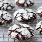 The crackled appearance is created by rolling the sticky dough in powdered sugar before baking. As the cookies expand in the oven, the sugar-coated surface breaks, producing the signature crinkles.