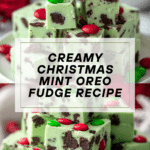 Keywords: Christmas fudge, peppermint fudge, Oreo fudge, holiday dessert, white chocolate fudge, mint Oreo treat
