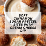 Keywords: cinnamon sugar pretzel bites, soft pretzels, snack, cream cheese dip, homemade pretzels, sweet pretzel bites