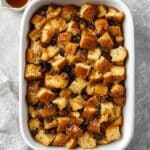 Keywords: bread pudding, dessert, baked pudding, caramel sauce, comfort food, raisins, cinnamon dessert