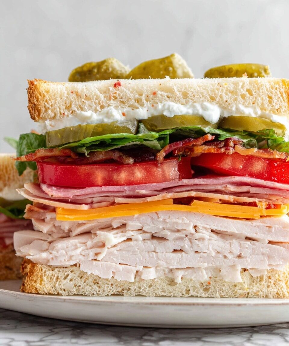 Keywords: Club Sandwich, Turkey Sandwich, Ham Sandwich, Bacon Sandwich, Classic Sandwich, Easy Lunch Recipe, American Sandwich