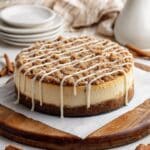 This Coffee Cake Cheesecake combines the rich, creamy texture of classic cheesecake with the warm, spicy flavors of cinnamon and a buttery crumble topping, creating a perfect dessert for coffee lovers and cake enthusiasts alike. Featuring a crunchy digestive biscuit base and a moist sour cream-infused filling, it’s baked in a water bath for the perfect creamy consistency.
