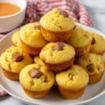 Delicious and fun Corn Dog Muffins combine the classic flavors of cornbread and hot dogs into bite-sized mini muffins. Perfect as a party appetizer, snack, or lunch treat, these moist cornbread bites feature a savory hot dog center and are served best warm with mustard, ketchup, or relish.