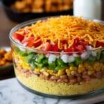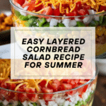 This Cornbread Salad is a delicious, layered dish that combines the savory flavors of cornbread, pinto beans, corn, fresh vegetables, and sharp cheddar cheese, all tied together with a creamy buttermilk ranch dressing. Perfect as a side dish or a light meal, it’s best served chilled after the flavors have had time to meld in the refrigerator.