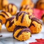 Store the pumpkin balls in an airtight container in the refrigerator for up to 5 days. They can be enjoyed cold straight from the fridge or left out for a few minutes to soften. For longer storage, freeze the balls in a single layer on a baking sheet, then transfer to a freezer-safe container for up to 1 month. Thaw in the fridge before serving.