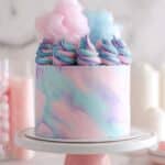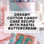 This whimsical Cotton Candy Cake features vibrant pastel layers and a luscious cotton candy flavored buttercream frosting. Light and moist layers are tinted pink and blue, filled and frosted with a creamy, sweet cotton candy buttercream. Perfect for celebrations, this show-stopping cake is finished with fluffy cotton candy topping for a fun, nostalgic treat.