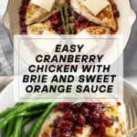 This Cranberry Chicken recipe features tender, pan-seared chicken breasts topped with a tangy, sweet homemade cranberry sauce and melted brie cheese. It’s a delightful blend of savory and fruity flavors, perfect for a cozy dinner or special occasion meal.