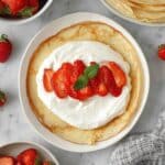 - Assemble and garnish: Spread or pipe the cream cheese filling evenly onto each crepe. Garnish with sliced fresh strawberries and thinly sliced fresh mint on top. Serve the crepes immediately for the best taste and texture.