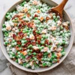 Keywords: pea salad, creamy pea salad, bacon salad, cheddar cheese salad, picnic side dish, easy salad recipe