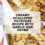 Keywords: scalloped potatoes, creamy potatoes, baked potatoes, Yukon gold potatoes, thyme, comfort food, holiday side dish