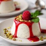 Creamy Vanilla Panna Cotta with Raspberry Coulis and Pistachio Garnish Recipe