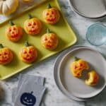 Store any leftover cheesy jack-o’-lanterns in an airtight container in the refrigerator for up to 2 days. To reheat, bake at 325°F for about 5 to 7 minutes or microwave briefly until warmed through, though reheating in the oven helps keep the dough crisp.